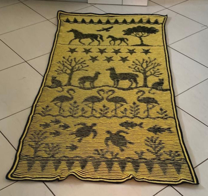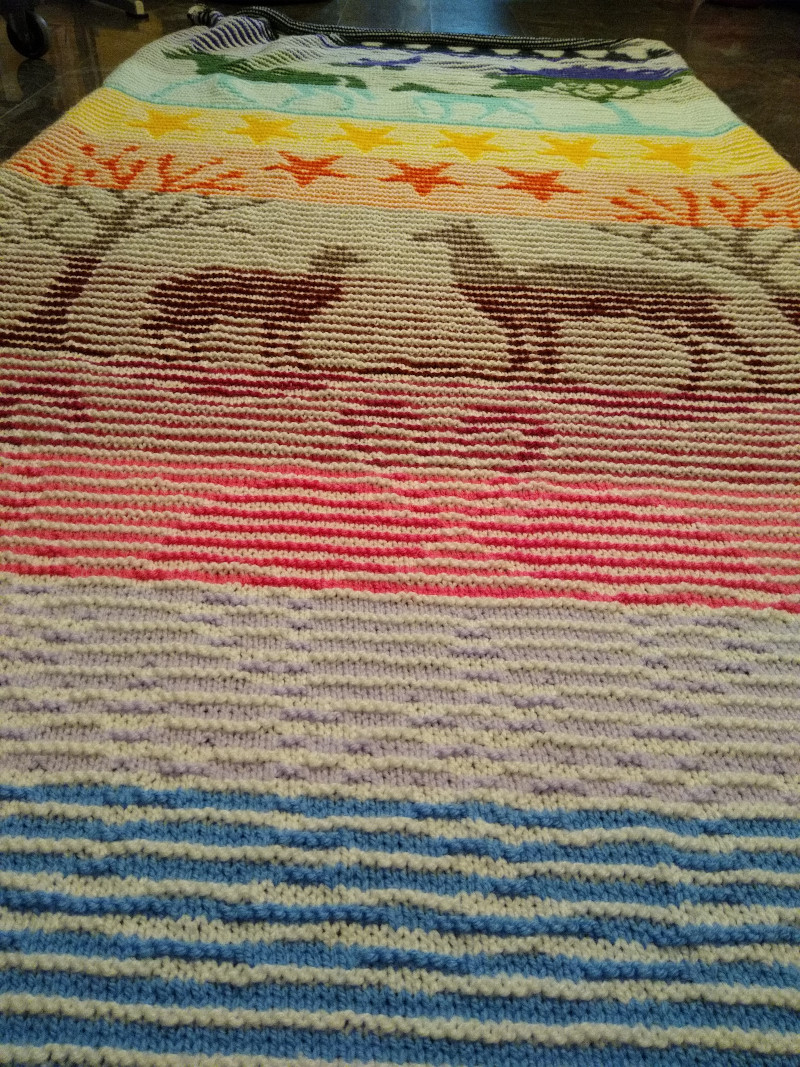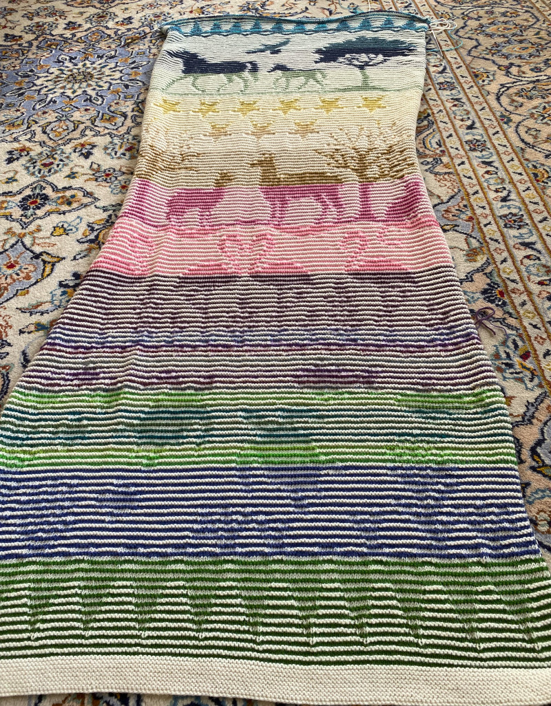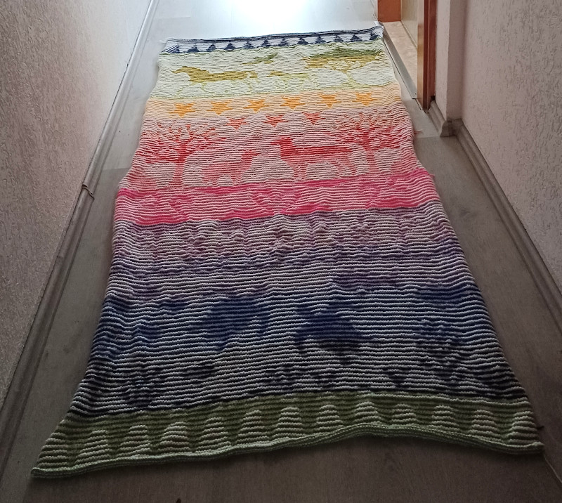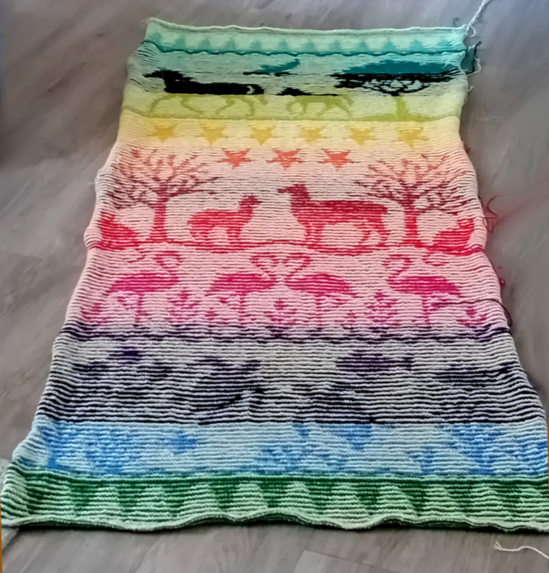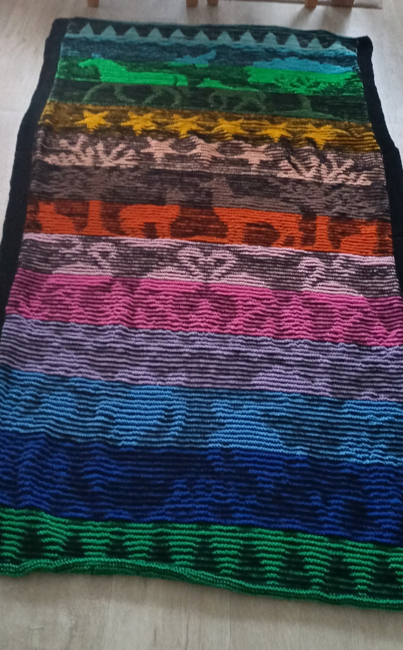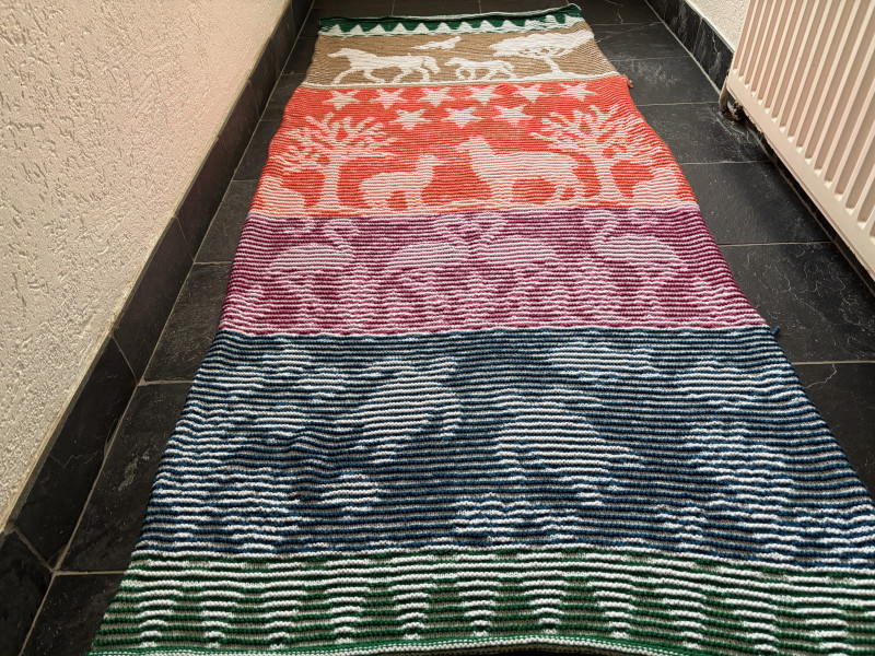 Danach kommt jeweils alle ein bis zwei Wochen ein neuer Teil dazu, immer 24 Hin- und Rückreihen bzw. eine neue Farbe. Insgesamt sind es 14 Teile bis zur Fertigstellung der Decke, die zusätzlichen Randstreifen werden nach Abschluss erhältlich sein.