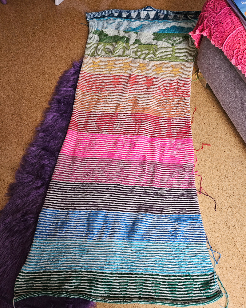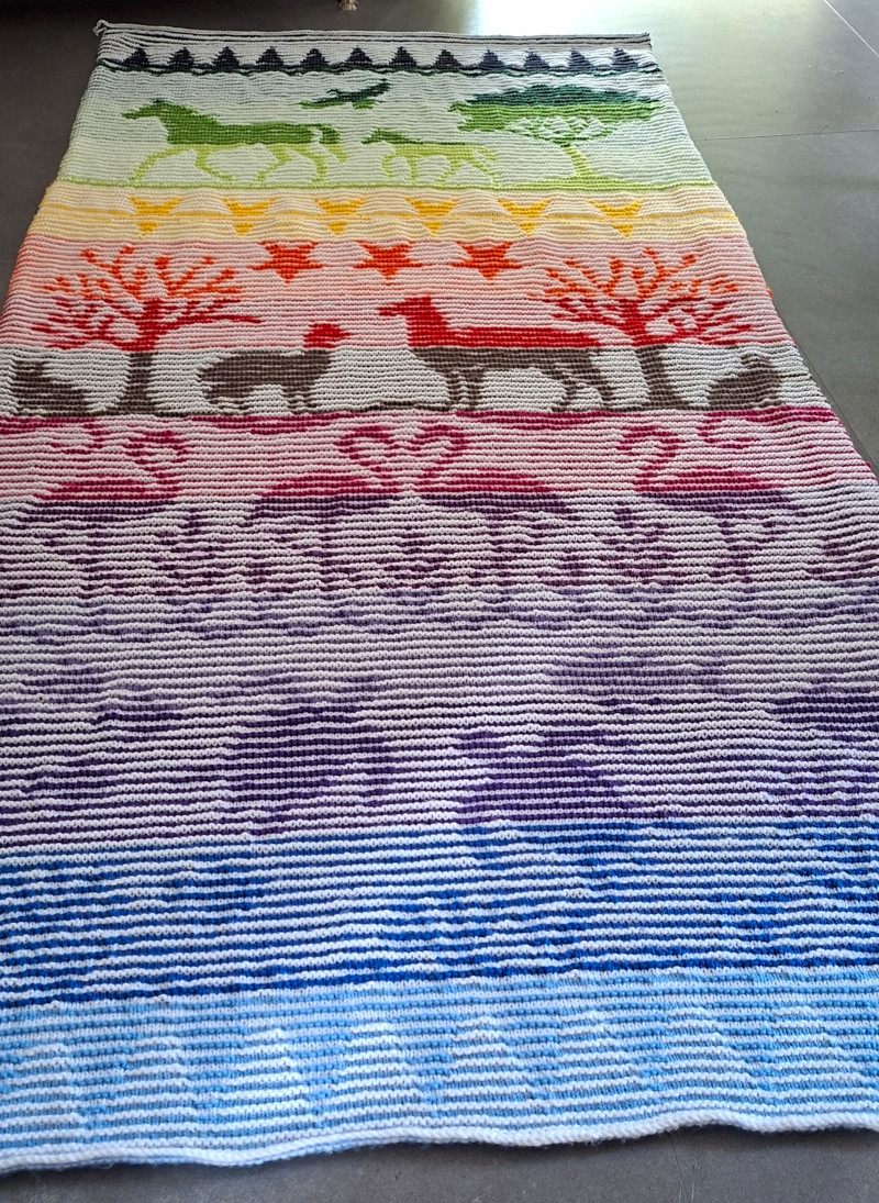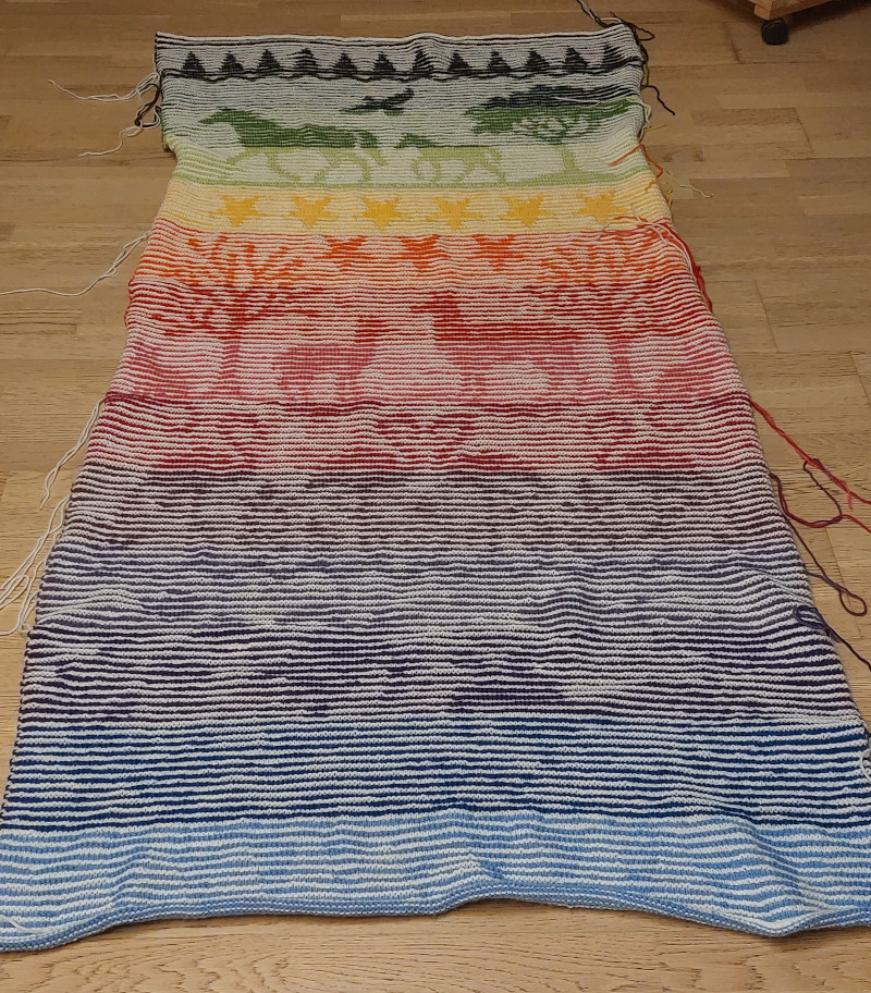 Das Motiv wurde in 14 unterschiedlichen Motivfarben gestrickt, dafür reichen pro Farbe 133m Lauflänge.