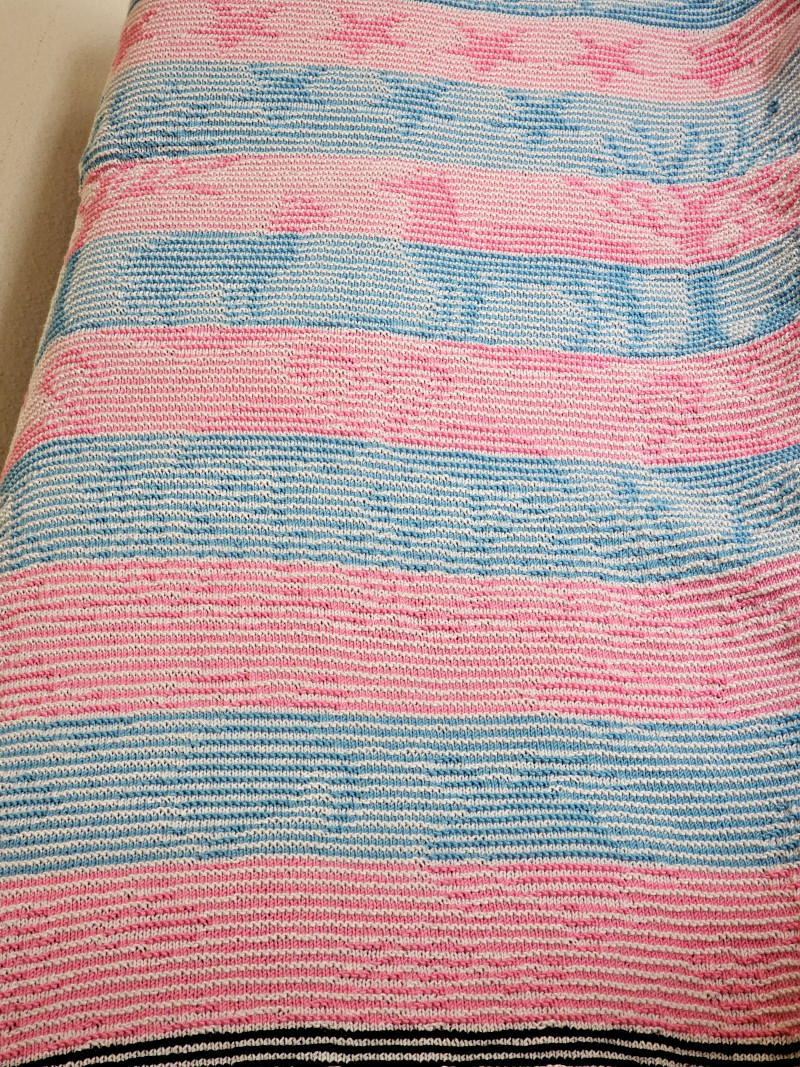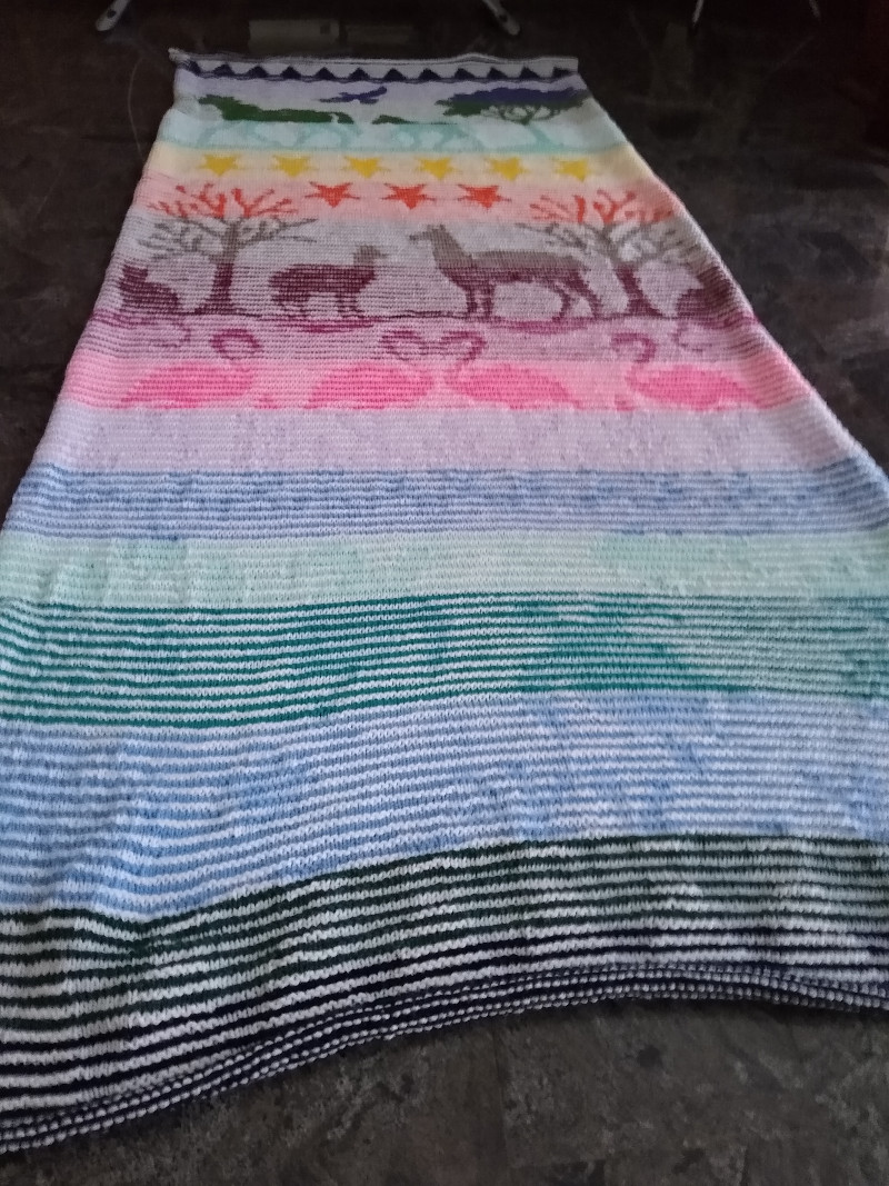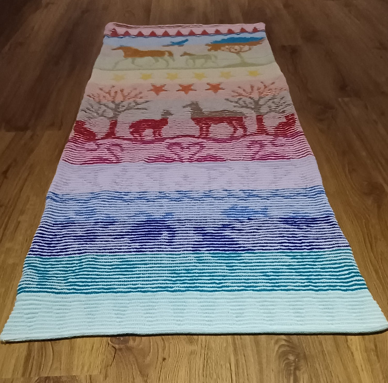 Mehr Maschen bekomme ich nicht auf meine Nadel ;-) aber du hast nach der Fertigstellung auch noch die Möglichkeit, an den Seiten zwei Ergänzungsstreifen aus jeweils 50 Maschen und 337 Hin- und Rückreihen zu stricken und diese anzuhäkeln. Die Anleitung zu den Ergänzungsstreifen findest du hier: https://www.illusionsstricken.de/decken/patchworkdecke-randstreifen/