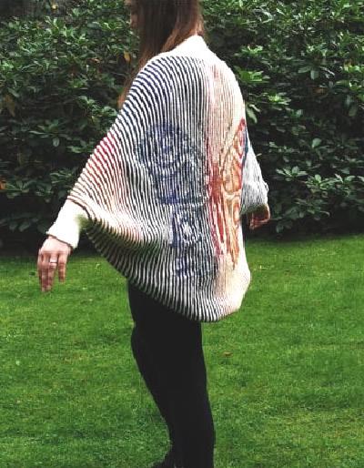 Ein Seelenwärmer ist ein Rechteck, bei dem die Ecken umgeklappt und zusammengenäht wurden. Bündchen um den mittleren Ausschnitt und für die Arme vervollständigen ihn.