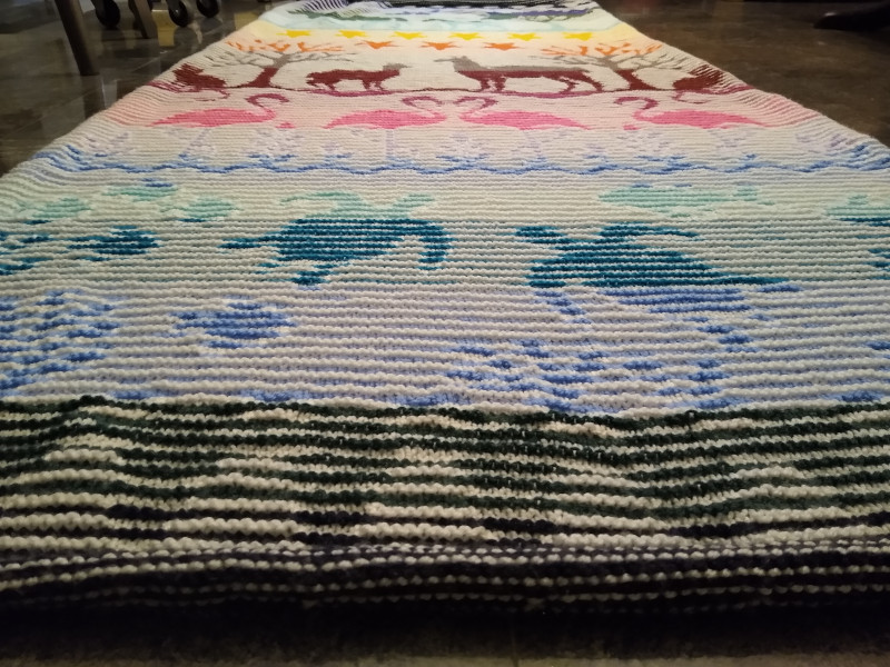 Mehr Maschen bekomme ich nicht auf meine Nadel ;-) aber du hast nach der Fertigstellung auch noch die Möglichkeit, an den Seiten zwei Ergänzungsstreifen aus jeweils 50 Maschen und 337 Hin- und Rückreihen zu stricken und diese anzuhäkeln. Die Anleitung zu den Ergänzungsstreifen findest du hier: https://www.illusionsstricken.de/decken/patchworkdecke-randstreifen/