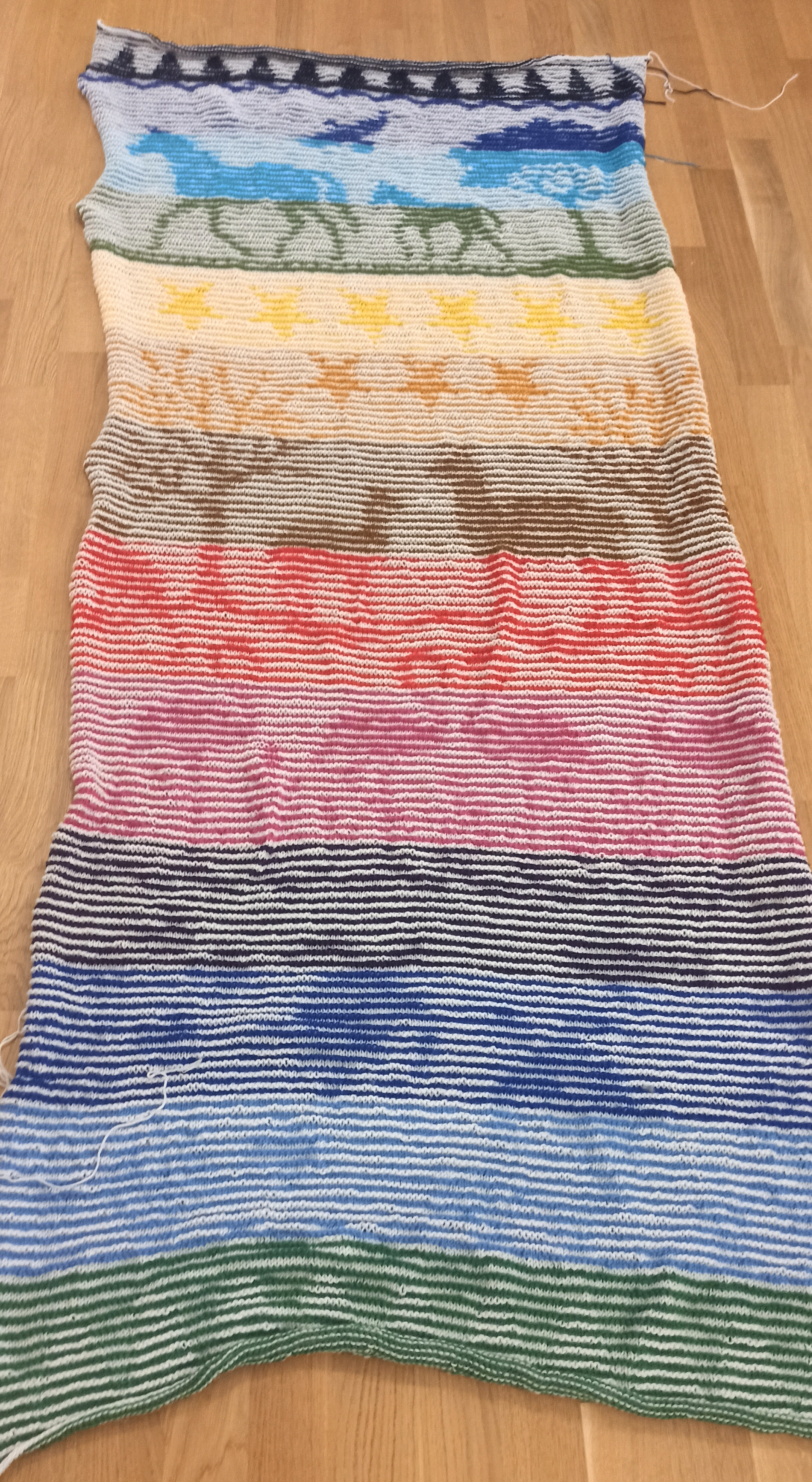 Das Motiv wurde in 14 unterschiedlichen Motivfarben gestrickt, dafür reichen pro Farbe 133m Lauflänge.