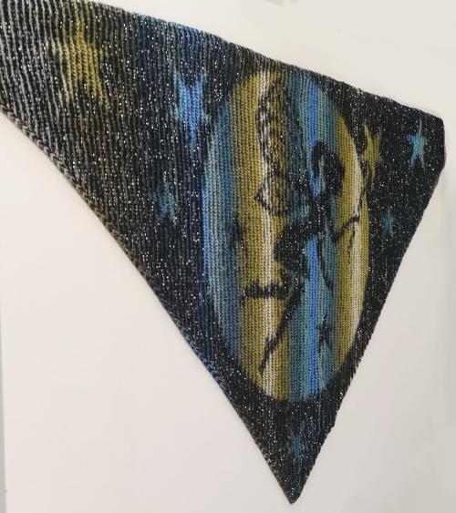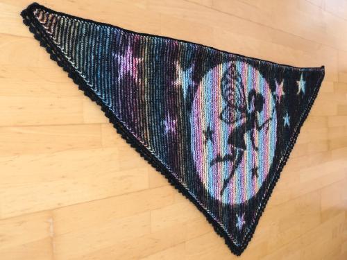 Carmen hat sie gleich mal auf einem Seelenwärmer fliegen lassen. Hier kann man sehen, dass sie auch in “umgekehrter” Farbverteilung super aussieht. Also ist die Entscheidung für die passende Wolle nicht einfacher geworden! ;-)